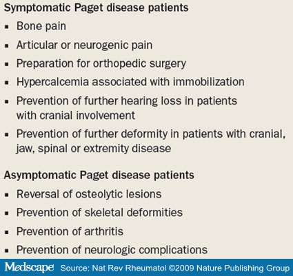 Drug therapy: The Food and Drug Administration has approved several medications to treat Paget’s disease. The medications work by controlling the excessive breakdown and formation of bone that occurs in the disease. The goal of treatment is to relieve bone pain and prevent progression of the disease. People with Paget’s disease should talk to their doctors about which medication is right for them. It is also important to get adequate calcium and vitamin D through diet and supplements as prescribed by your doctor, except for patients who have had kidney stones.