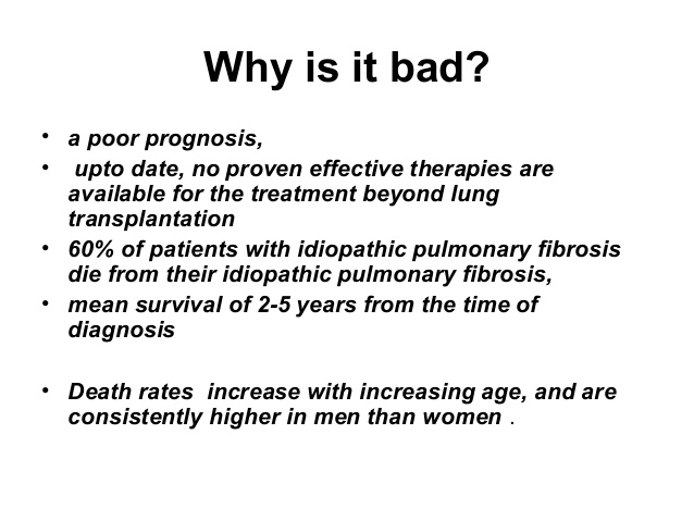 The course of pulmonary fibrosis — and the severity of symptoms — can vary considerably from person to person. Some people become ill very quickly with severe disease. Others have moderate symptoms that worsen more slowly, over months or years.