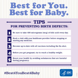 Though not all birth defects can be avoided, prenatal care and awareness of past or current conditions can help with prevention.