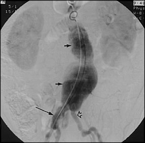 Most aortic aneurysms are fusiform. They are shaped like a spindle (“fusus” means spindle in Latin) with widening all around the circumference of the aorta. (Saccular aneurysms just involve a portion of the aortic wall with a localized out pocketing).