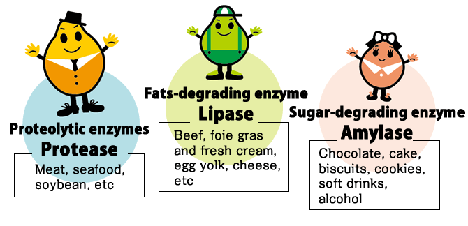 Enzymes deal with breaking down our foods because they take a major role in what we call the process digestion in the human body. but notice what the ending result is of mostly every ingredient in our 4 food groups is; SUGAR. It because of the food has some sugar in it but also the chemical reaction with the enzyme to allow the food to break down into smaller compounds to be utilized in the body with send through the entire digestion process.