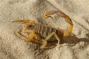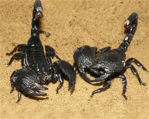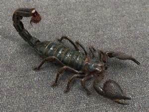 They outlasted the Dinosaurs, There are about 1500 species in all. This creature may not look so threatening to the human eye but believe or not some of these scorpions can be highly venomous like in North Africa and in the Middle East; that is responsible for over 75% of scorpion related deaths every year. This scorpion is the Death Stalker Scorpion. All scorpions are considered to be arachnids, 4 pairs of legs for walking, a pair of pincers for holding prey, and mouth parts called chelicerae(s) to chew, the body tapers ending at its stinger and use it usually as a last resort. Most scorpions are shy and lie around waiting for its prey like a roach, cricket, etc… to even eating themselves; including rather than humans it usually only eats insects and stings humans in defense feeling threatened usually (the sting as a last resort). They are nocturnal insects usually. Scorpions are built for battle and crush their prey and immobilize (by paralyzing)them with that venom with sometimes doing it to their own species (eating their own sibling even).