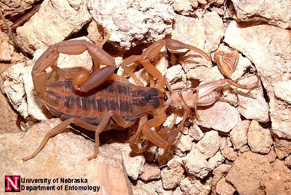 The Stripe Backed Scorpion varies in color from yellowish-tan to brown. As you can see in the picture below, the Stripe Backed Scorpion has 2 dark gray lines that run the length of it’s back. Older scorpions tend to be a darker brown, and the stripes may not be as obvious.