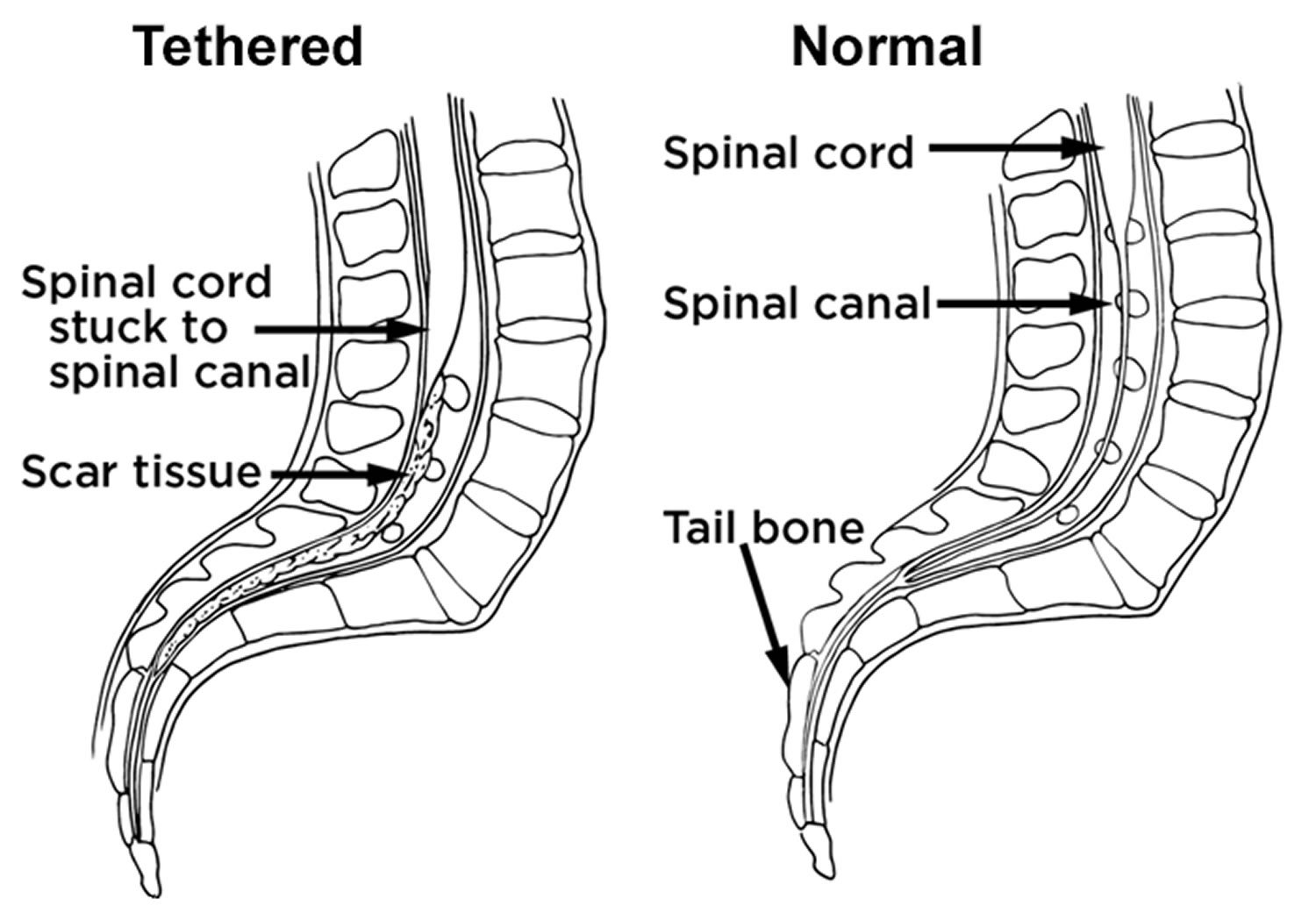 Tethered Spinal Cord is a stretch-induced functional disorder associated with the fixation (tethering) effect of inelastic tissue on the caudal spinal cord, limiting its movement. This abnormal attachment is associated with progressive stretching and increased tension of the spinal cord as a child ages, potentially resulting in a variety of neurological and other symptoms.