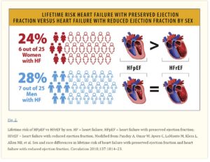 Persons with diabetes have about a two to eight fold greater risk of heart failure than those without diabetes. Women with diabetes have a greater risk of heart failure than men with diabetes. Part of the risk comes from the diabetes association with other risk factors for heart disease such as high cholesterol or obesity or other risk factors. However, the disease process of diabetes also damages the heart muscle.