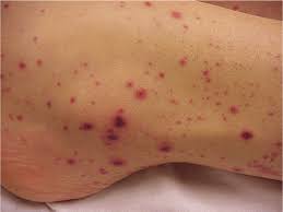 With few platelets, people with ITP often have bleeding symptoms such as spontaneous bruising, petechiae (pe-TEEK-ee-ay), tiny red dots on the skin, Bleeding from the gums or nose, and for women, possibly heavy menses. More severe bleeding symptoms include blood blisters on the inside of the mouth, blood in the urine or stool, or bleeding in the brain.