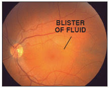 Central serous retinopathy (also called choroidopathy) is a relatively common condition in which a “blister” of fluid forms under the retina (serous retinal detachment). Since this “blister” forms in the center of the retina and affects central vision, the condition has been appropriately named central serous retinopathy (CSR).