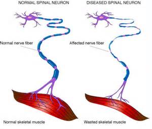 Motor neurons reach from the brain to the spinal cord and from the spinal cord to the muscles throughout the body. The progressive degeneration of the motor neurons in ALS eventually leads to their demise. When the motor neurons die, the ability of the brain to initiate and control muscle movement is lost. With voluntary muscle action progressively affected, people may lose the ability to speak, eat, move and breathe. The motor nerves that are affected when you have ALS are the motor neurons that provide voluntary movements and muscle control. Examples of voluntary movements are making the effort to reach for a smart phone or step off a curb. These actions are controlled by the muscles in the arms and legs. Motor neurons are nerve cells located in the brain, brain stem, and spinal cord that serve as controlling units and vital communication links between the nervous system and the voluntary muscles of the body. Messages from motor neurons in the brain called upper motor neurons are transmitted to motor neurons in the spinal cord which are lower motor neurons and from them to particular muscles. The problem with ACL, both the upper motor niurons and the ower motor niurons degenerate or die which causes stoppage of sending messages to muscles. Unable to function, the muscles gradually weaken, waste away (atrophy), and have very fine twitches (called fasciculations). Eventually, the ability of the brain to start voluntary movement with messages is unable to work anymore.