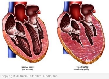 When your heart is enlarged, it’s like a soft biceps — it’s weak and out of shape. What happens is the heart muscle enlarges because the heart is trying so hard to do its function, PUMP, but it gets too difficult and the muscle of the heart enlarges/thickens causing the organ not to work properly. So this causes back up with circulatory blood, think like a plumber–your pipes are backing up. So what does this ends up causing? Your body starts to retain fluid, your lungs get congested with fluid and your heart begins to beat irregularly. If the heart is effected in working so will the lungs in time and visa versa. Think like the car if the engine (the heart) is effected working properly the transmission (the lungs) will be also in time.