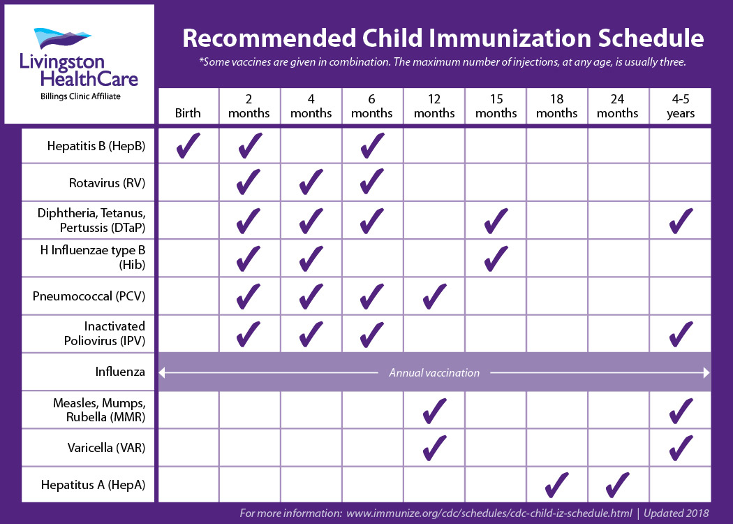 Immunizing helps to protect the health of our community – especially those who can’t be immunized, like children who are too young or those who can’t for medical reasons. Vaccine schedules recommended by agencies and organizations, such as the CDC, the American Academy of Pediatrics, and the American Academy of Family Physicians cover about 14 different diseases.