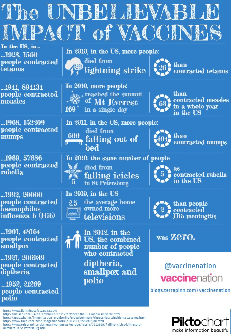 Stanford Children’s Health states “Over the years, vaccines have generated some controversy over safety, but no convincing evidence of harm has been found. And although children can have a reaction to any vaccine, the important thing to know is that the benefits of vaccinations far outweigh the possible side effects.”. So think over getting vaccinations for your child if you against them based on the proof of what they can do. Always check with your physician if you have any questions.