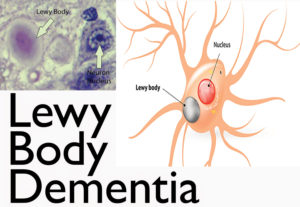 In Lewy Body Dementia [LBD], these abnormal proteins are diffuse throughout other areas of the brain, including the cerebral cortex. The brain chemical acetylcholine is depleted, causing disruption of perception, thinking and behavior. Lewy body disease exists either in pure form, or in conjunction with other brain changes, including those typically seen in Alzheimer’s disease and Parkinson’s disease.”