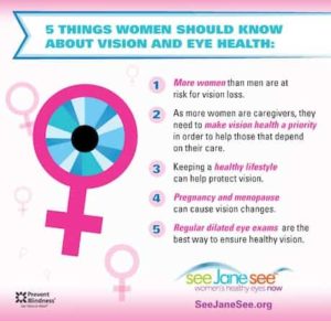 “Prevent Blindness has declared April as Women’s Eye Health and Safety Month in an effort to educate the public on the increased risk for women and vision health issues, as well as steps that can be taken to prevent vision loss.