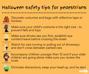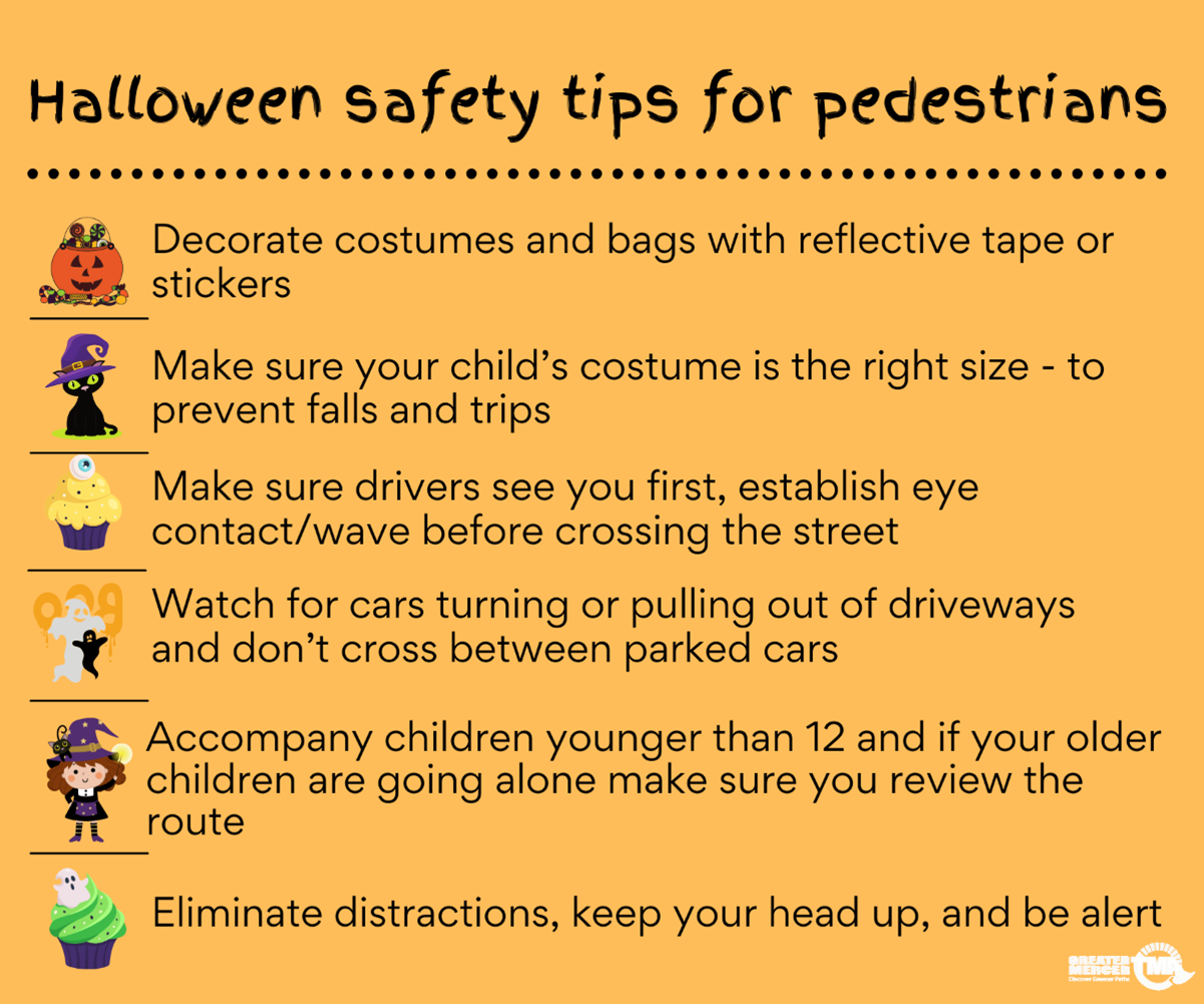 - Ensure costumes and accessories fit properly. Masks, costumes and shoes should fit properly to avoid blocked vision, trips and falls.