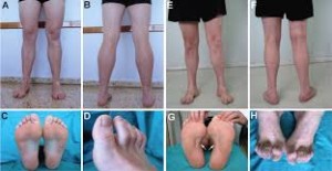 Diagnosis of CMT begins with a standard medical history, family history, and neurological examination. Individuals will be asked about the nature and duration of their symptoms and whether other family members have the disease. During the neurological examination a physician will look for evidence of muscle weakness in the individual’s arms, legs, hands, and feet, decreased muscle bulk, reduced tendon reflexes, and sensory loss. Doctors look for evidence of foot deformities, such as high arches, hammertoes, inverted heel, or flat feet. Other orthopedic problems, such as mild scoliosis or hip dysplasia, may also be present. A specific sign that may be found in people with CMT1 is nerve enlargement that may be felt or even seen through the skin. These enlarged nerves, called hypertrophic nerves, are caused by abnormally thickened myelin sheaths.