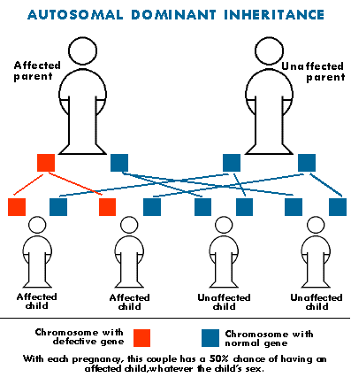 The gene mutations in CMT disease are usually inherited. Each of us normally possesses two copies of every gene, one inherited from each parent. Some forms of CMT are inherited in an autosomal dominant fashion, which means that only one copy of the abnormal gene is needed to cause the disease. Other forms of CMT are inherited in an autosomal recessive fashion, which means that both copies of the abnormal gene must be present to cause the disease. Still other forms of CMT are inherited in an X-linked fashion, which means that the abnormal gene is located on the X chromosome. The X and Y chromosomes determine an individual’s sex. Individuals with two X chromosomes are female and individuals with one X and one Y chromosome are male.
